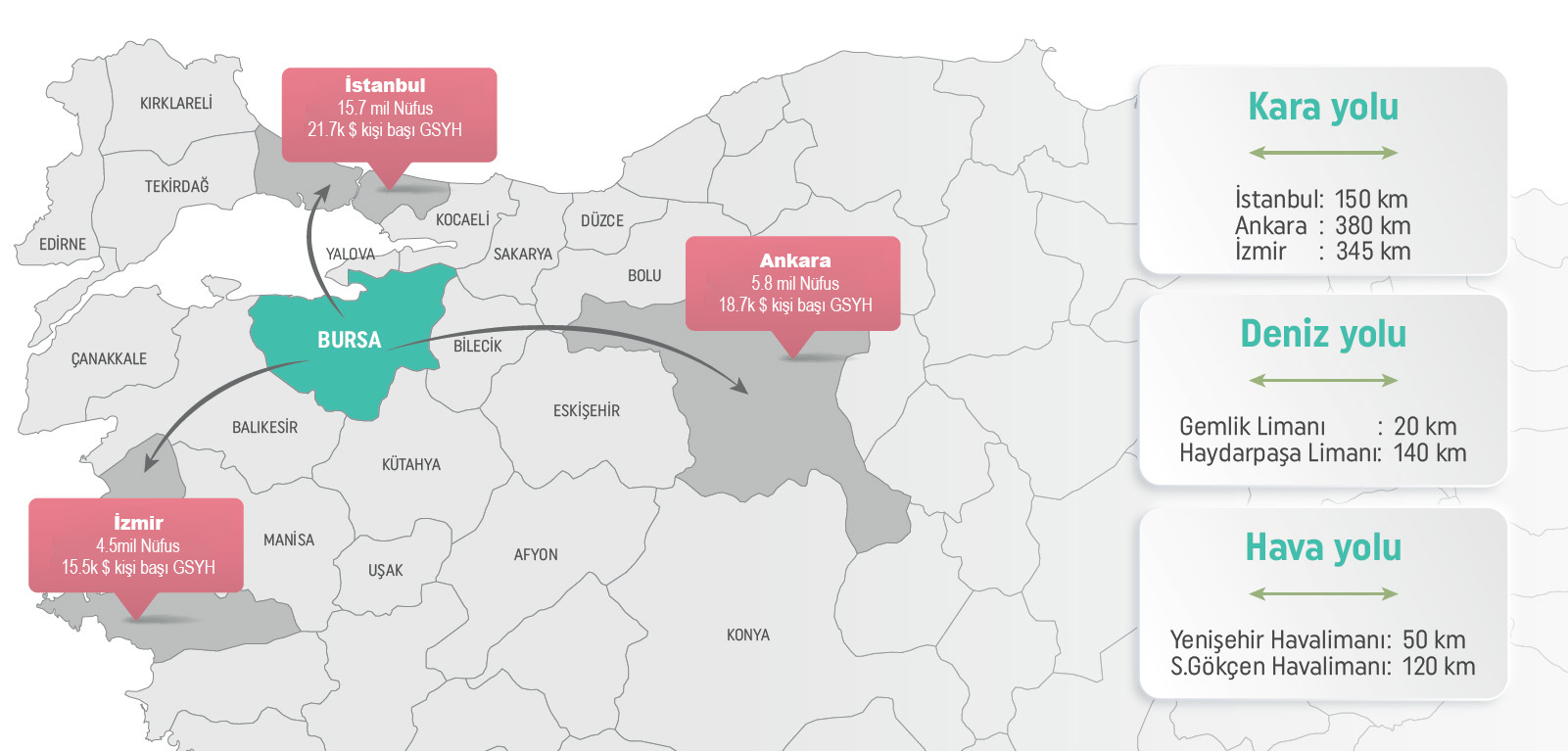 In Bursa, over 50% of the total population of over 3.2 million is young, and its GDP per capita is approximately $14,000.